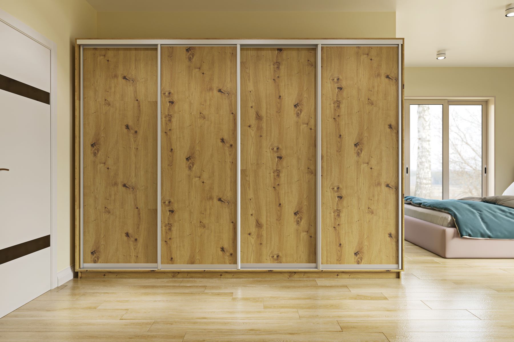 LUNATA š300/v220 štvordverová šatníková skriňa, dub Artisan