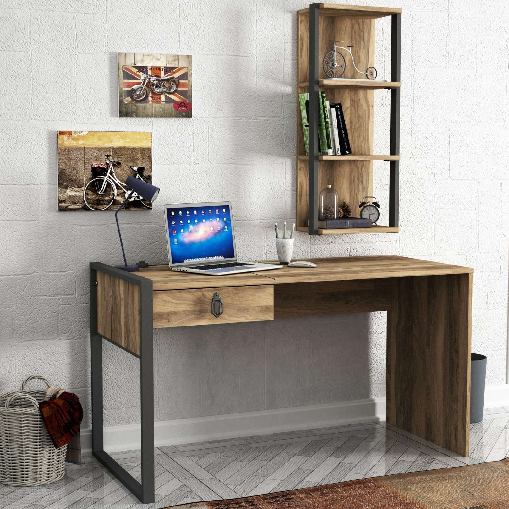 Písací stôl LUSTPredstavujeme vám písací stôl LUST, ideálnu voľbu pre vašu kanceláriu alebo detskú izbu. Tento industriálny stôl je navrhnutý tak, aby vám poskytol pohodlné a efektívne pracovné prostredie s moderným nádychom.Typ tovaru: Písací stôlVhodné do miestnosti: Kancelária a detská izbaMateriál: LTD a kovRozmer: 124 x 75.8 x 60 cmFarba: OrechVybavenie: 1 zásuvkaŠtýl: IndustriálneTvar: ObdĺžnikovýZostava obsahuje: Konferenčný stolík (š124 x h60 x v75,8 cm), nástenná polica (š29,5 x h21,3 x v79,5 cm)Hrúbka materiálu: 18 mmDodatočné informácie: Dodávame v demontePísací stôl LUST je vyrobený z kvalitného LTD materiálu a kovu s hrúbkou 18 mm, čo zaisťuje jeho pevnosť a dlhú životnosť. Elegantná orechová farba dodáva stolu moderný a štýlový vzhľad, ktorý sa hodí do akéhokoľvek interiéru. Stôl je vybavený praktickou zásuvkou, ktorá poskytuje dostatok úložného priestoru pre vaše pracovné potreby a pomôcky.Zostava obsahuje nielen praktický písací stôl, ale aj konferenčný stolík a nástennú policu, ktoré rozširujú úložné možnosti a pomáhajú udržať váš pracovný priestor organizovaný. Dodávame v demonte, čo znamená, že nábytok ľahko zložíte podľa priloženého návodu. Pisací stôl LUST je perfektnou voľbou pre každého, kto hľadá štýlový a funkčný nábytok do svojej kancelárie alebo detskej izby.