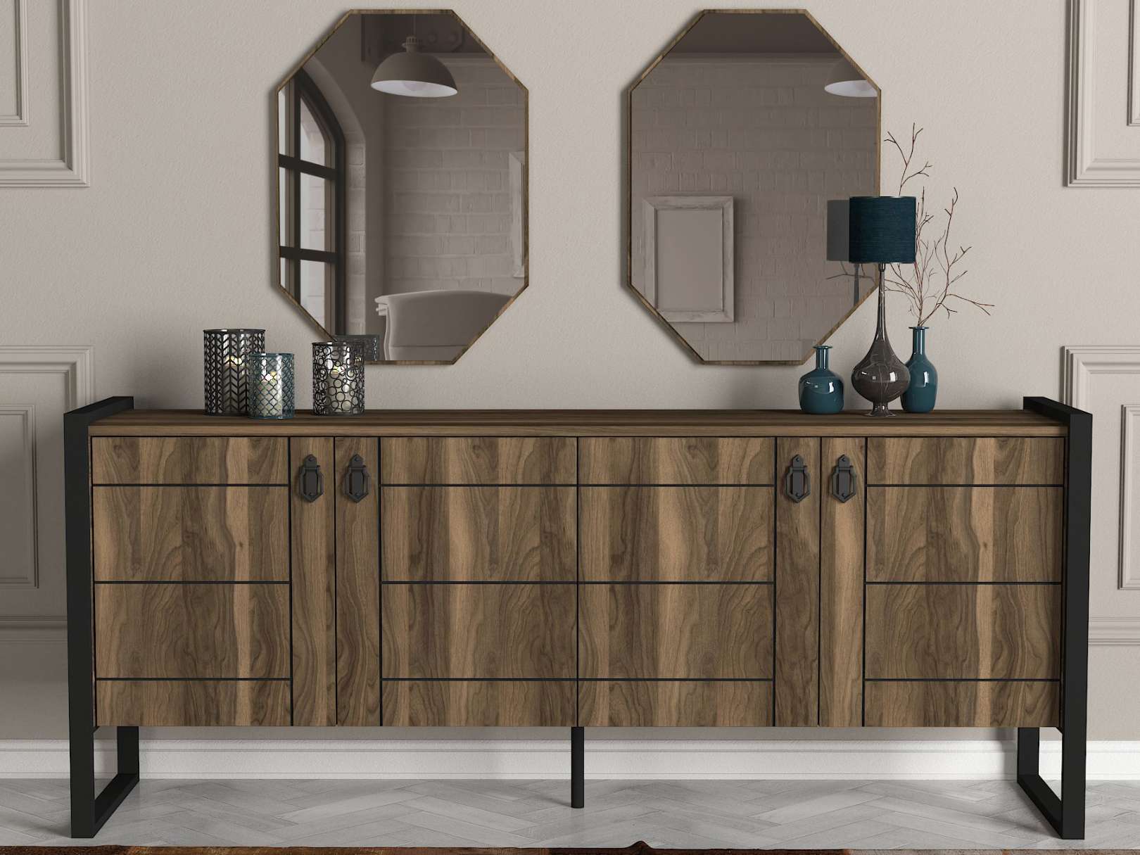 LUST široká komoda s nástenným zrkadlom, orech