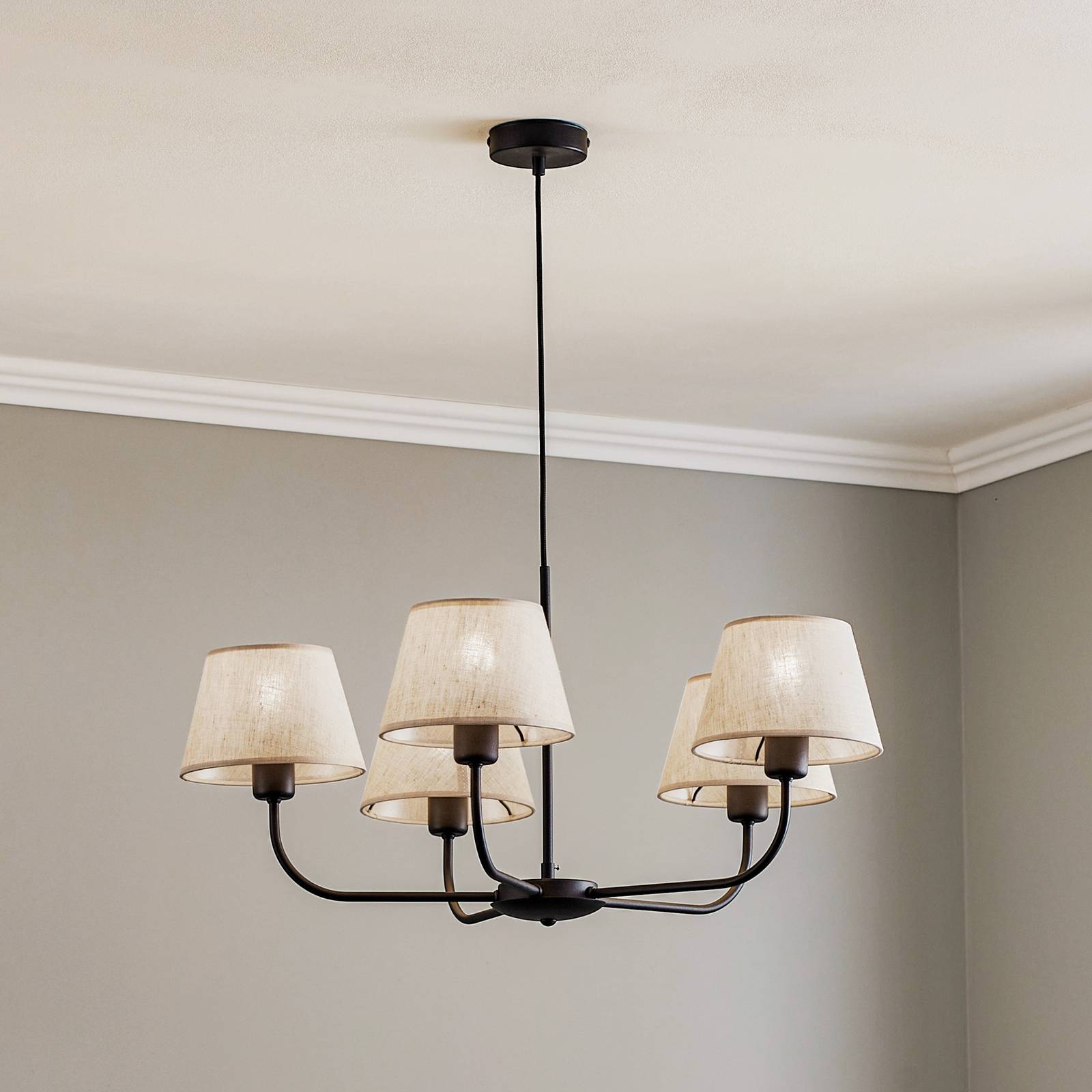 Luster Chicago: elegancia spojená s univerzálnym osvetlením Luster Chicago spája nadčasovú eleganciu s funkčnou univerzálnosťou. Vyrobený z vysoko kvalitného kovu, ľanu a plastu, tento svietidlo sa dokonale hodí do rôznych štýlov interiéru. Päť ľanových tienidiel v čiernej a prírodnej farbe vytvára harmonickú hru svetla, ktorá vytvára príjemnú atmosféru v obývacej izbe aj v jedálni. Možnosť stmievateľnosti pomocou externého stmievača umožňuje individuálne prispôsobiť intenzitu osvetlenia a vytvoriť tak požadovanú atmosféru. Osobitným rysom lustra Chicago je jeho európska výroba, ktorá je zárukou kvality a remeselného majstrovstva. Tento pôvod podčiarkuje exkluzivitu a dlhú životnosť produktu. Luster nie je len funkčným osvetľovacím telesom, ale aj štýlovým dizajnovým prvkom, ktorý dodá každej miestnosti osobitý charakter.