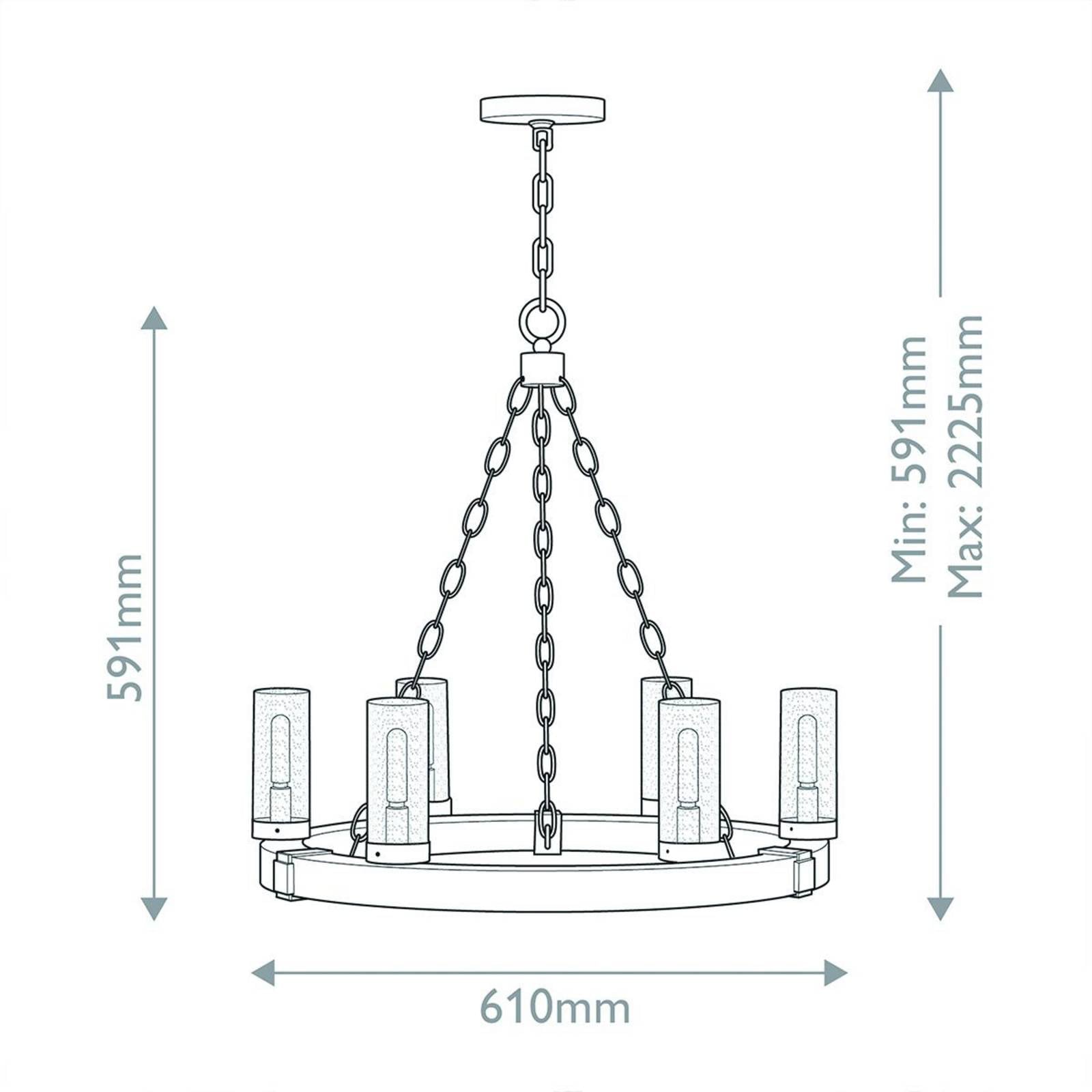 Luster Sawyer, 6-pl., farba dreva, oceľ, sklo, E14