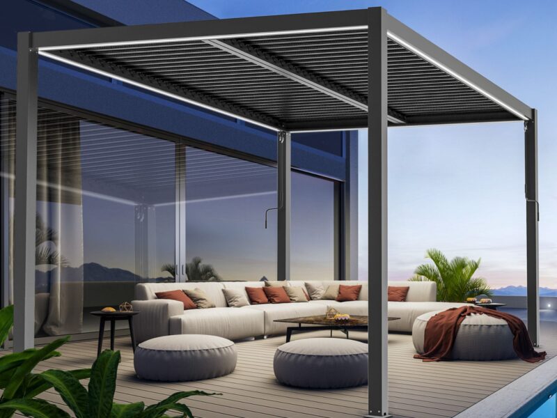 Štýlová záhradná perogola Luxe v elegantnom dizajne s pútavým Led osvetlením.
