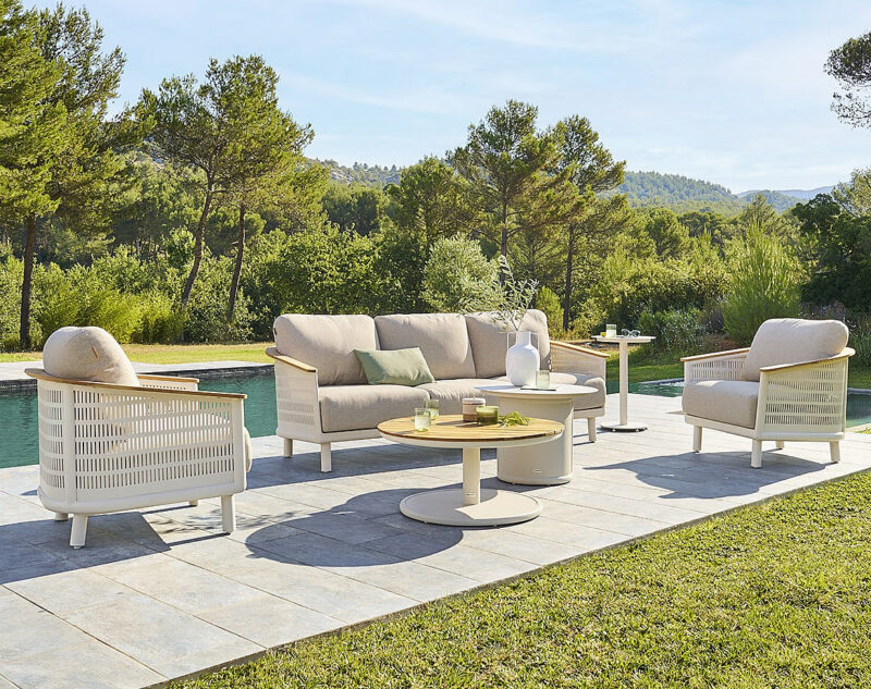 Luxusná hliníková zostava s pohodlnými poduškami z veľmi odolnej textílie olefín.