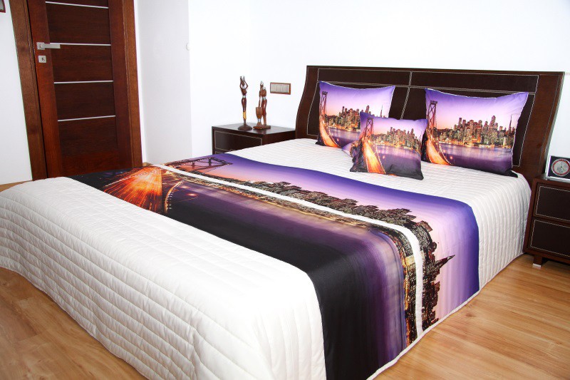 Luxusný prehoz prikrývka na posteľ Brooklyn Bridge fialovo biely Realistický obraz Šírka: 220 cm | Dĺžka: 240 cm 2ks 50×60 cm (štandard zdarma) Biela Šírka: 220 cm | Dĺžka: 240 cm