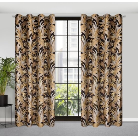 Luxusný záves s potlačou listov na kruhy 140 x 250 cm