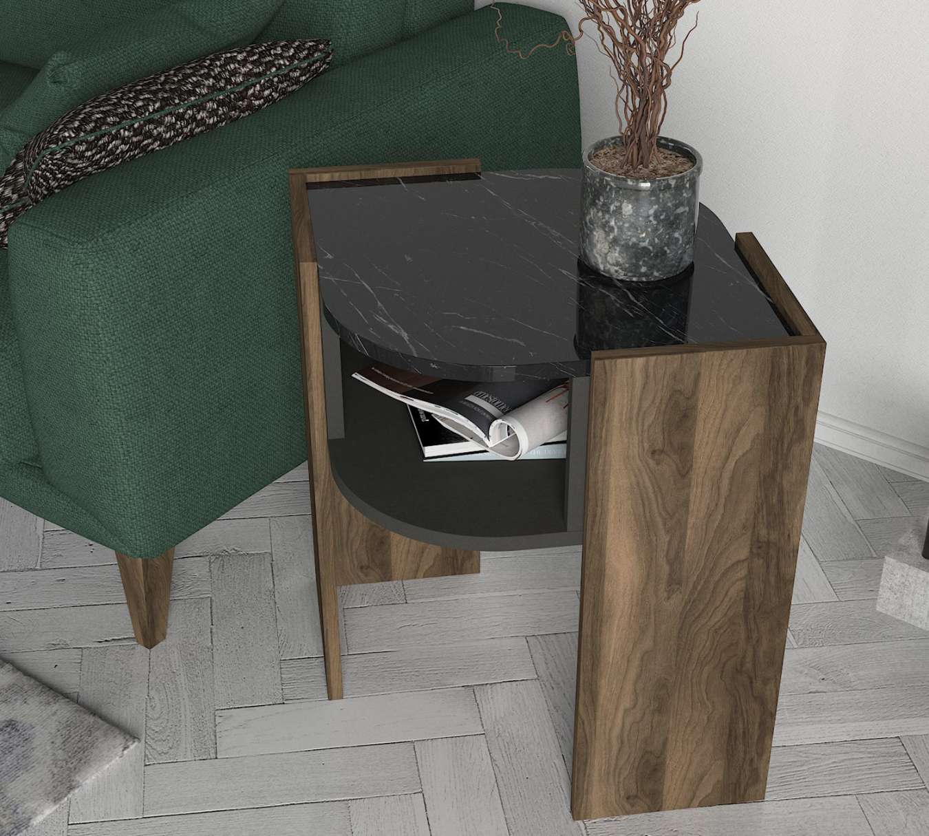 MABEL luxusný príručný stolík, orech/čierny mramor