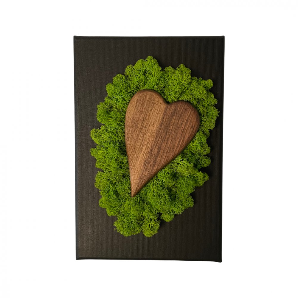 Machový obraz s dreveným srdiečkom 20 x 30 cm
