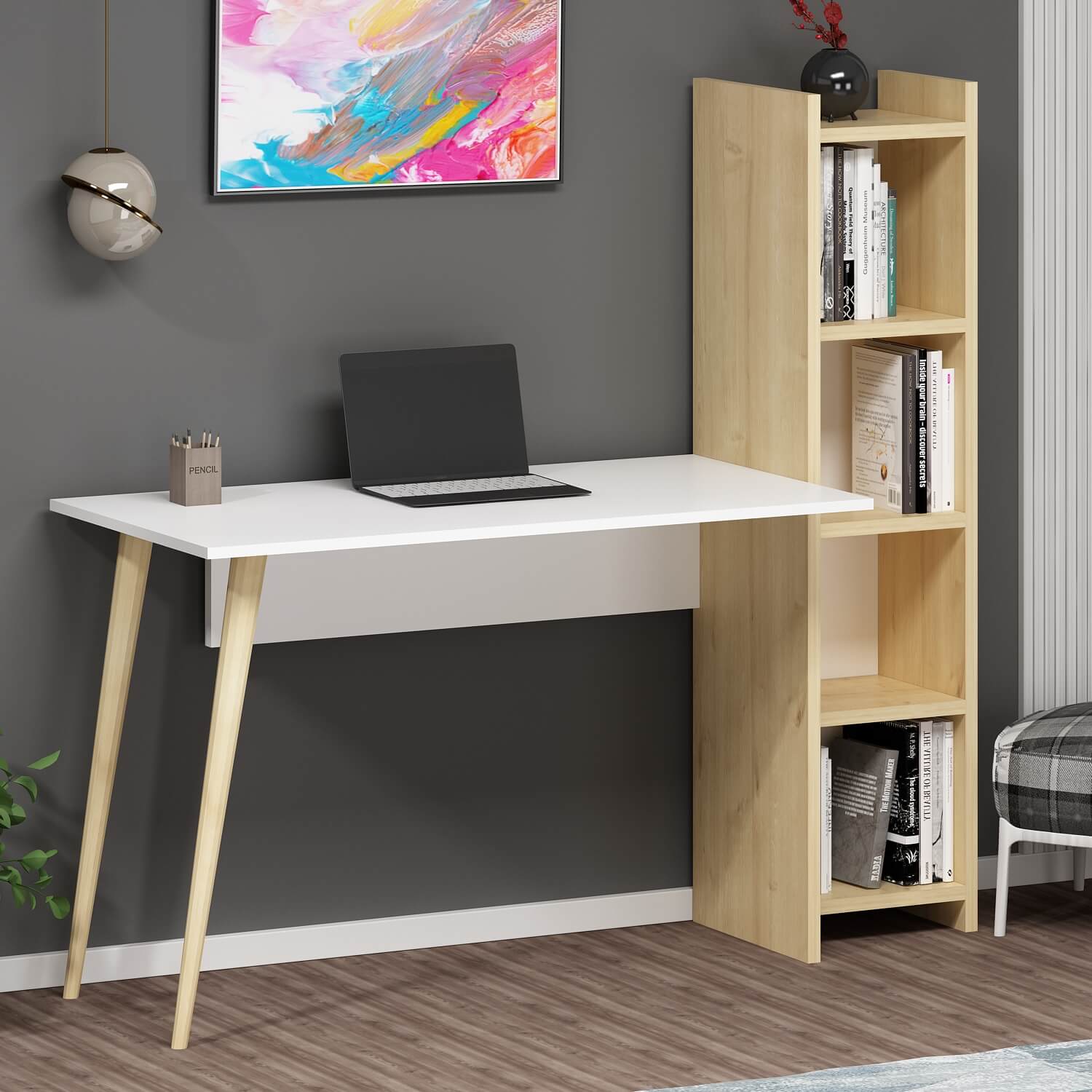 MADRID písací stôl s regálom, biela / dub