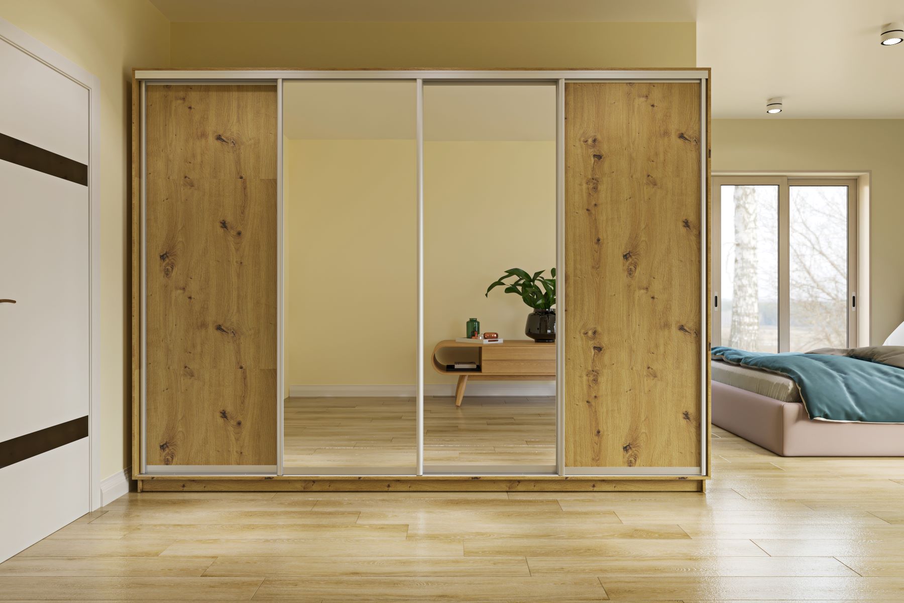 MAGMA 280 je veľká šatníková skriňa so 4 posuvnými dverami. Túto skriňu Vám ponúkame v žiadanom farebnom prevedení dub Artisan. Predná dverová časť je v kombinácii dub sonoma (2 dvere) a zrkadlo (2 dvere).Skriňa je efektne prepojená s úchytmi a kovaním v striebornej farbe/aluminium.Výnimočnosť skrine je v jej netypickej výške až 220 cm, čím sa zabezpečí väčší úložný priestor.Rozmery úložných častí si môžete pozrieť na fotke. Skriňa je členená na policovú a závesnú časť s 2 závesnými tyčami. Korpus skrine je vyrobený z kvalitnej LTD dosky.V našej ponuke nájdete aj skriňu MAGMA v bielej farbe aj farbe dub sonoma.Rozmery v/š/h: 220 x 280 x 60 cm.Dodávame v demonte.