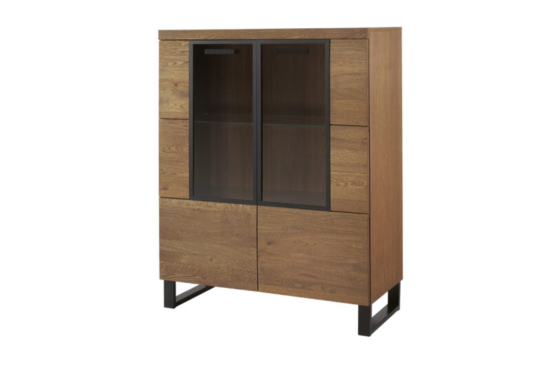 Nízka vitrína MAGNOLIA je kombináciou elegantnosti a funkčnosti. Precízne spracovanie je zárukou trvácnosti a štýlového dizajnu.Vonkajší korpus je vyrobený z prírodnej dubovej dýhy. Vnútorný korpus je z kvalitných LTD dosiek, ktoré sú potiahnuté fóliou v dekore dreva. Predná časť nábytku je z masívu dubového dreva. Úchyty a nožičky sú vyrobené z kovu, v čiernej farbe. Nábytok je vo farbe: dub rustikal, čierna.Vitrína je dvojdverová. Vo vnútri sa nachádzajú dve police, z toho jedna polica je presklená. LED osvetlenie nie je v cene vitríny. Je možné si ho dokúpiť.Rozmery(š,v,h): 96 x 142 x 42 cm.V našej ponuke nájdete aj ďalšie prvky zo sektoru MAGNOLIA, vďaka ktorým si vytvoríte obývačku či jedáleň podľa vašich predstáv a prianí.Dodávame v demontovanom stave.