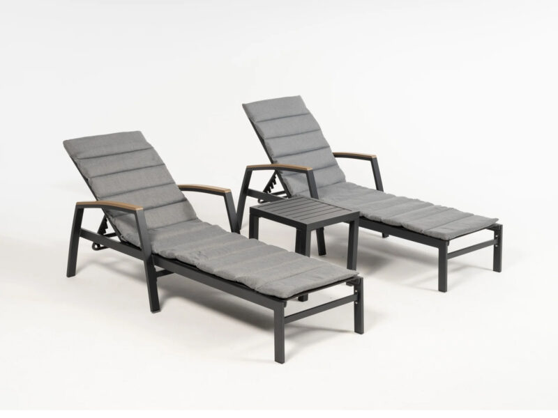 Set lehátok Malta s praktickým príručným stolíkom, moderným hliníkovým rámom a nastaviteľnými opierkami prinesie relax a pohodu na každú terasu, či k bazénu.