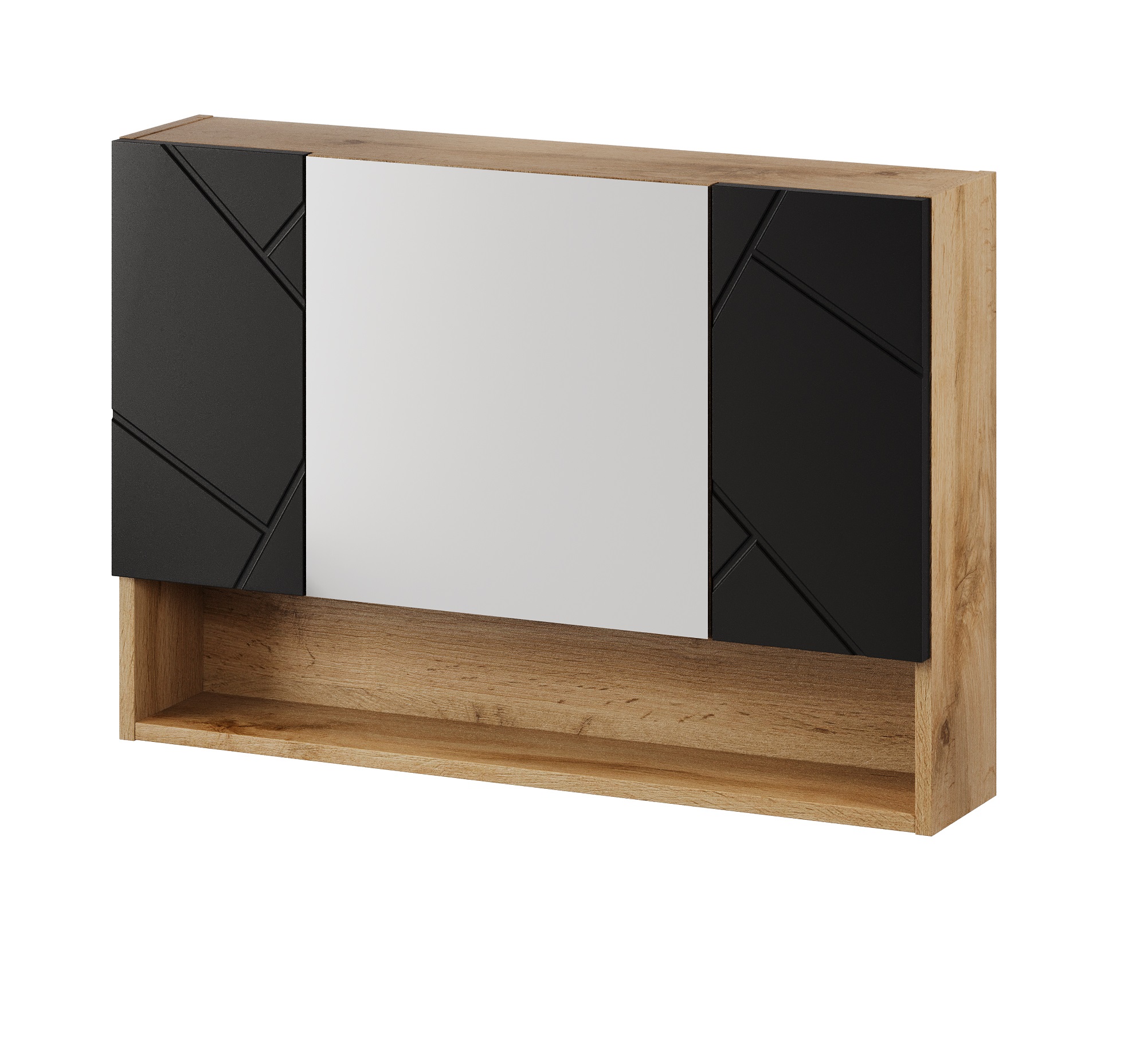MANDOLA 58 skrinka do kúpeľne so zrkadlom, dub Wotan / čierna