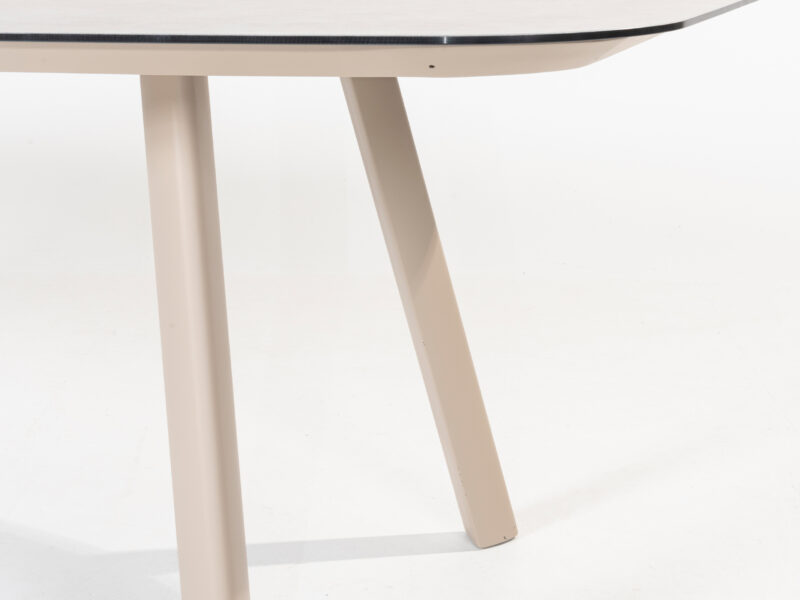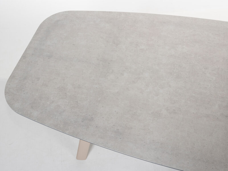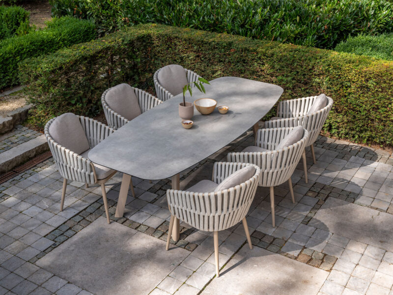 Stôl Manolo s jeho štýlovým zaobleným tvarom a odolnou keramickou doskou predstavuje stredobod pre vaše rodinné obedy, či grilovačky na záhrade.