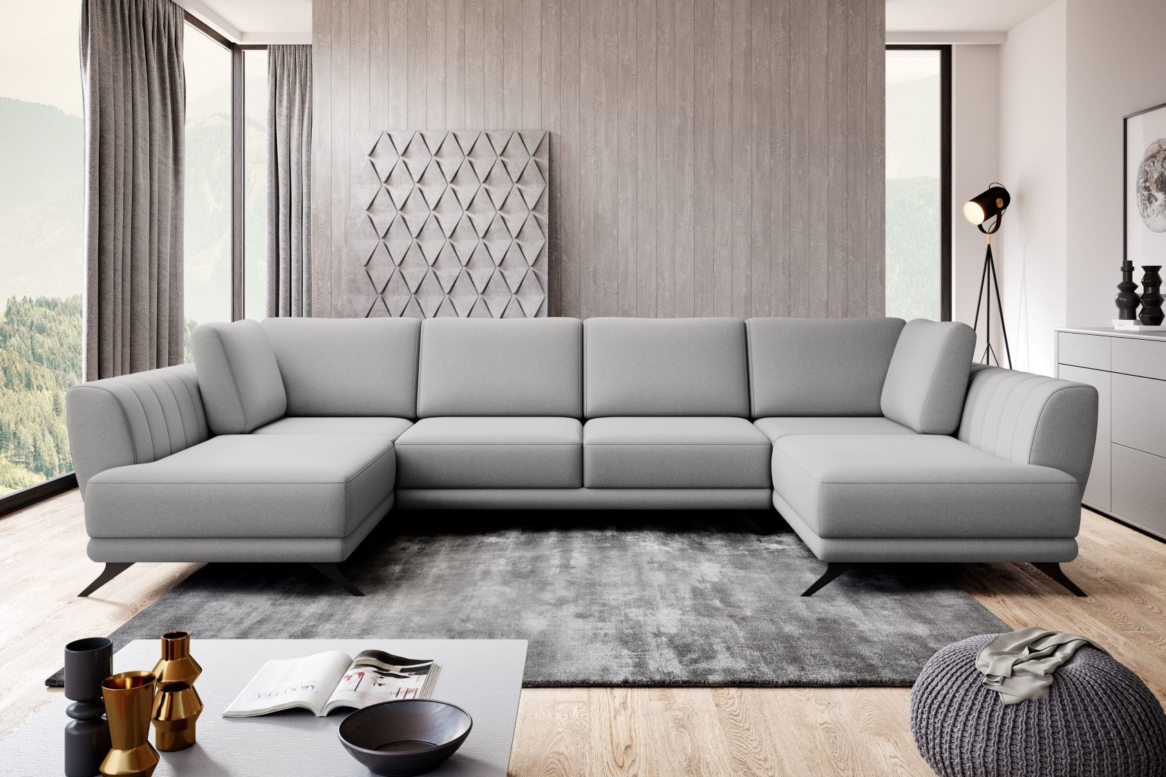 MARCO účková rozkladacia sedačka v tvare U sa hodí do mnohých interiérov.Cez deň elegantný a moderný kus nábytku do obývacej izby, v noci pohodlná posteľ plnej veľkosti, s funkciou rozkladu ponúka spaciu plochu v rozloženom stave rozmer až 320 x 214 cm. Sedačka sa veľmi ľahko rozkladá, za čo vďačí automatickému mechanizmu DL, ktorý vytvorí spaciu plochu. Súčasťou rohovej pohovky je okrem ďalšej plochy na spanie aj úložný kontajner, ktorý vám ušetrí miesto v skrini na sezónné lôžkoviny, poprípade vánkúše alebo deky. Sedadlo je vyplnené vysoko pružnou HR penou, ktorá je odolná proti deformácii a má schopnosť znovu získať svoj pôvodný tvar. Pena HR sa navyše prispôsobuje polohe tela, takže poskytuje skutočne veľmi vysokú úroveň pohodlia.Rohová sedacia súprava MARCO je nielen funkčným kúskom nábytku, ale aj veľmi elegantným a zaujímavým dizajnom. Prešívanie na bokoch je pútavým prvkom, dizajnové oceľové nohy určite dodávajú rohovej pohovke eleganciu a charakter.Pokiaľ hľadáte kus nábytku, ktorý vám poskytne ako pohodlie a funkčnosť, tak aj krásu, potom bude sedačka MARCO perfektnou voľbou!Rozmery:Šírka: 362 cmHĺbka: 191 cmVýška s vankúšmi: 90 cmHĺbka sedadla: 60 cmVýška sedadla: 44 cmPovrch na spanie: 320×124 cmDodávame v demonte v balení o rozmeroch:1. 195x102x62 cm 72 kg 2. 170x80x62 cm 72 kg 3. 195x102x62 cm 72 kgFarebné prevedenie sa môže líšiť v závislosti od nastavenia Vášho monitora.