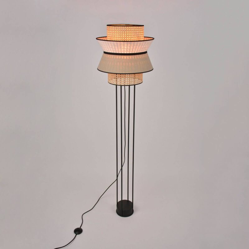 Dizajnová stojacia lampa Singapour s atraktívnym dvojitým tienidlom Ratanový výplet, ktorý tvorí vnútorné kužeľovité tienidlo stojacej lampy Singapour DBL, dodáva tomuto krásnemu doplnkovému svetelnému zdroju, ktorý je ideálny na osvetlenie napr. obývacej časti v obývacej izbe, nezameniteľný ázijský nádych. Pod dvojfarebným ľanovým tienidlom pôsobivo vynikne štruktúra prúteného materiálu aj pri zapnutom osvetlení. Singapour sa pohodlne zapína a vypína pomocou nožného spínača na kábli. Štýlovo navrhnutá stojacia lampa, ktorá dodá mnohým štýlom interiéru to pravé a vnesie do obývačiek a spální útulnú atmosféru. – Vybavená textilným káblom – Dizajn: MARKET SET (Francúzsko)