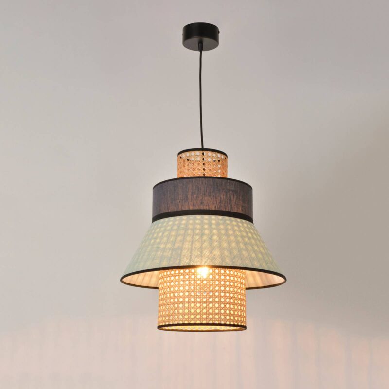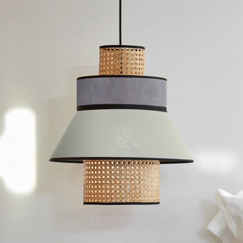Nádherne navrhnutá závesná lampa Singapour ML so štyrmi prvkami tienidla Závesná lampa Singapour ML šíri mierne ázijský nádych, čo naznačuje už jej názov. Tienidlo tvoria celkovo štyri prvky – dve kónické ratanové tienidlá, ako aj dve rôznofarebné látkové tienidlá z praného ľanu. Po zapnutí svetla sa potom spod spodného ľanového tienidla vynorí aj ratanový vzor a vytvorí atmosférický svetelný efekt, ktorý vytvára veľmi útulnú atmosféru. Závesné svietidlo, ktoré poskytuje príjemné osvetlenie na akomkoľvek mieste v domácnosti, či už ako všeobecné osvetlenie alebo zavesené nad stolom. Singapour ML je súčasťou série dekoratívnych svietidiel francúzskej spoločnosti Corep SAS, ktorá pod značkou MARKET SET vydáva výtvory mladých dizajnérov, ktoré šíria luxusnú atmosféru za dostupnú cenu. – externe stmievateľné – vybavené textilným káblom