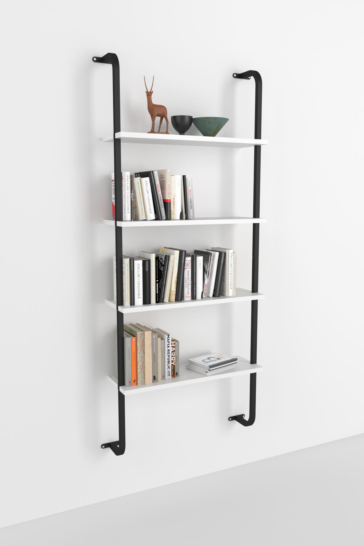 MARLE 4 nástenná knižnica, biela / čierna