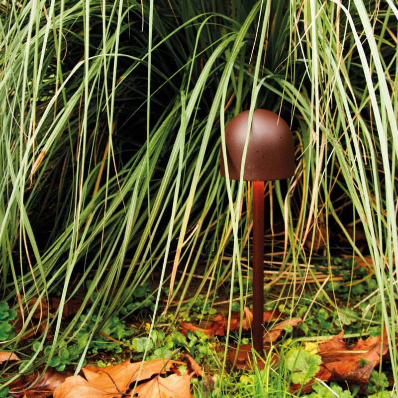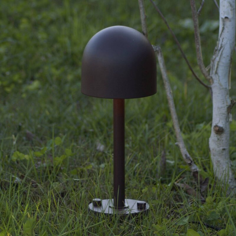 Podstavcové svetlo Boleto LED, ktoré svieti nadol bez oslnenia Toto podstavec nielen obohacuje vonkajší priestor o príjemné svetlo, ale aj jeho dizajn dokonale splýva s okolím. Dizajn je inšpirovaný hríbikom, ktorého stonka, polkruhový klobúk a hrdzavohnedá farba sa odrážajú v svetle podstavca. Boleto tak veľmi dobre harmonizuje so zelenými plochami. Priemyselne pôsobia zároveň aj hlavy skrutiek na základni a povrchová úprava z kortikálnej ocele. LED diódy sú namontované vo vnútri obrazovky, ktorá je v spodnej časti otvorená, za krytom z opálového polykarbonátu a vyžarujú svetlo difúzne na okolitý povrch, takže je dosiahnutý nenápadný a nepriamy efekt nepriameho osvetlenia. Boleto vyrába výrobca Martinelli Luce . Rodinný podnik v druhej generácii vedie Emiliana Martinelli; taliansky dizajnér je tiež tvorcom série Boleto. – je potrebný externý ovládač LED; dostupné osobitne prostredníctvom príslušenstva