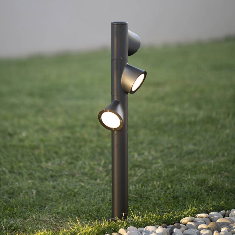 Cylindrické LED cestné svetlo Bruco v antracitovej farbe s tromi svetelnými zásuvkami Dráhové svetlo Bruce s tromi plameňmi je pôsobivým adaptabilným zdrojom svetla pre moderné vonkajšie zariadenia. Okrúhle svetelné zásuvky s integrovanými LED diódami a opálovými polykarbonátovými krytmi je možné počas montáže nezávisle od seba otáčať, takže teplé biele svetlo osvetľuje zo všetkých strán určitú oblasť alebo okolie. Nenápadne vyzerá konštrukcia vyrobená z hliníka ako antracitovo čierny valec. Za koncepciu série Bruco je zodpovedná dizajnérska agentúra Studio Natural, ktorú zakladajú a riadia Marco De Santi a Alessandro Paoletti. Taliansky prémiový výrobca Martinelli Luce vyrába cestné svetlo v obvyklej vysokej kvalite.