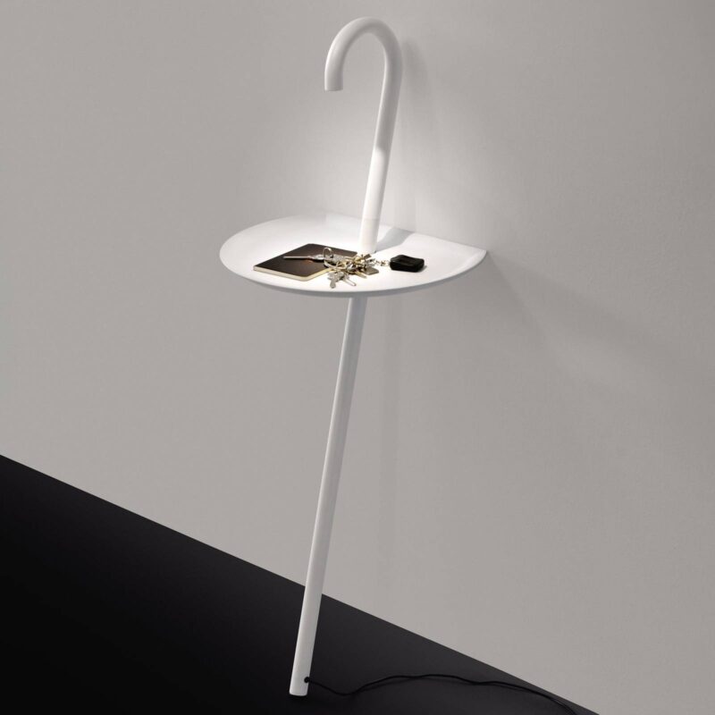 Clochard – puristicky navrhnuté LED svetlo s poličkou Tento zariaďovací prvok vychádzajúci z konceptu spoločnosti Orlandini Design je inšpirovaný trampami, ktorí sa pohybujú okolo s niekoľkými vecami a vychádzkovou palicou a odpočívajú opreté o steny domu. Tento obrázok je implementovaný do stojacej stojaca lampa Clochard s hliníkovým stojanom v tvare vychádzkovej palice a okrúhlym, rovným chrbtom zo syntetickej živice. Posledná z nich umožňuje oprieť sa o stenu. LED dióda je integrovaná do horného konca stojana smerom nadol a osvetľuje predmety umiestnené na poličke. Monochromatický povrch zdôrazňuje jednoduchý, redukovaný charakter. Dizajnová lampa Clochard je vyrobená talianskym výrobcom Martinelli Luce , ktorý sa hlási k nezameniteľným žiarovkám tej najvyššej kvality.
