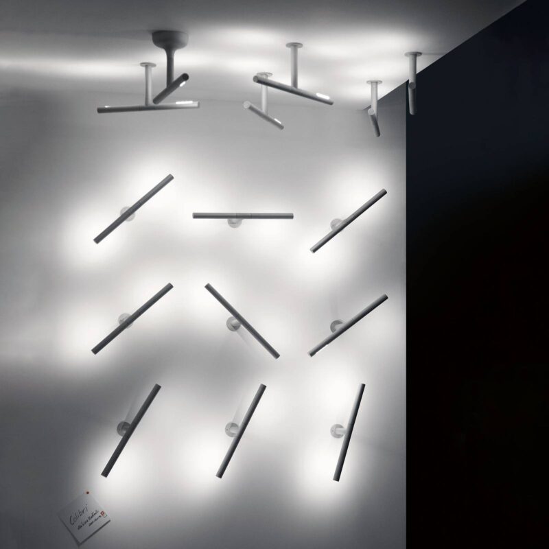 Variabilné LED nástenné svetlo Colibrì s tenkým dizajnom Nástenné svietidlo Colibrì vyzerá elegantne a moderne so svojou štíhlou T-štruktúrou a plynulým prechodom k nástennému držiaku. T-prvok vyrobený z čierneho eloxovaného hliníka je možné otočiť pred konzolu tak, aby ho bolo možné umiestniť vertikálne, horizontálne alebo pod uhlom pred stenu. Nízko oslňujúce svetelné zdroje LED sú integrované na oboch koncoch dlhej časti konštrukcie za krytmi z opálového polykarbonátu. Ich príslušné úseky sa dajú tiež otáčať, takže svetelné body môžu byť orientované priamo do miestnosti alebo na nepriame osvetlenie steny. Dizajn vytvoril v roku 2013 Talianka Emiliana Martinelli. Výroba prebieha v spoločnosti Martinelli Luce. Jej zakladateľom je Martinelliho otec Elio Martinelli. – LED driver integrovaný do nástenného držiaka – Udelená Nemecká cena za dizajn 2014 a Cena iF Design Award 2013