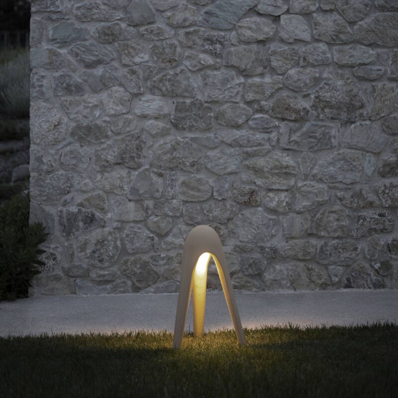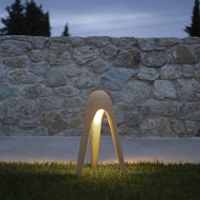Futuristické LED osvetlenie terasy a chodníkov Cyborg z betónu – so zástrčkou a prívodným káblom Cyborg obohacuje moderné vonkajšie priestory nepriamym svetlom a dizajnom, ktorý by mohol byť priamo zo sci-fi filmu. Svietidlo je navrhnuté ako trojnožka so zaobleným vysokým bodom a je celé vyrobené z betónu. LED diódy sú integrované do spodnej časti vrchnej časti a osvetľujú nohy a okolitý povrch mäkkým svetlom. Cyborg sa dá umiestniť ako zemné svietidlo vedľa chodníkov na zelených plochách alebo na terase a je napájaný pomocou kábla so zástrčkou. Tento kreatívny vonkajší zdroj svetla navrhol Karim Rashid, medzinárodne uznávaný a oceňovaný priemyselný dizajnér. Bezchybná povrchová úprava od talianskeho výrobcu Martinelli Luce robí z Cyborgu vysokokvalitný svetelný objekt.