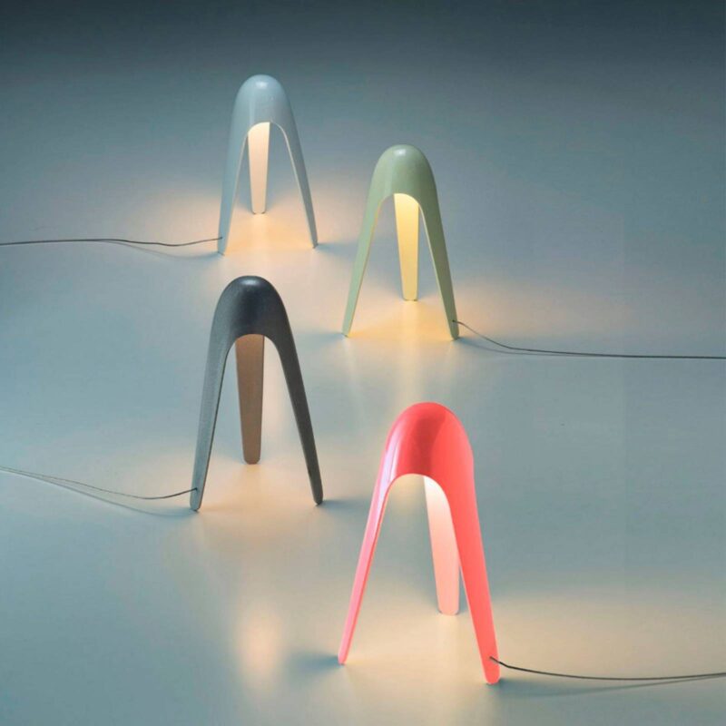Vyrobené v Taliansku – nezvyčajná stolová lampa Cyborg LED v jemných pastelových farbách Dizajn tejto stolovej lampy je rovnako mystický, ako znie názov „Cyborg“, s hrbatým tvarom a trojnohým rámom pripomínajúcim bytosť alebo predmet z budúcnosti. Horná časť svietidla z tlakovo liateho hliníka ukrýva trvalo nainštalované LED diódy, ktoré po zapnutí – dotykom hlavy rámu – vyžarujú teplé biele svetlo smerom nadol cez satinovaný polykarbonátový difúzor a vyčarujú veľmi príjemnú svetelnú atmosféru bez oslnenia. Stolová lampa Cyborg vďačí za svoj osobitý dizajn svojmu tvorcovi, americkému dizajnérovi Karimovi Rashidovi, ktorý už získal niekoľko ocenení za dizajn za svoje originálne návrhy svietidiel a navrhol svietidlo v mene talianskeho prémiového výrobcu Martinelli Luce.
