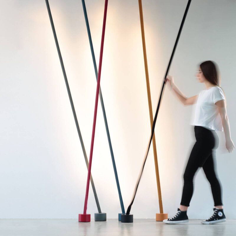 LED stojacia lampa Elastica ako pás pružnej tkaniny Elastica nie je len zdrojom svetla, ale aj kreatívnym nábytkovým prvkom. Svietidlo je pružný a elastický pás látky, ktorý je na jednej strane vybavený pásom LED. Pás je natiahnutý medzi okrúhlym protizávažím na podlahe a stropom. Vďaka svojej flexibilite je možné použiť rôzne výšky stropu alebo šikmé dráhy od 250 do 320 cm. Na zapnutie a vypnutie svetla stačí krátko potiahnuť za pás, dlhšie podržanie umožňuje stmievanie. Koncept tohto prispôsobivého a inšpiratívneho svetla pochádza od medzinárodne pôsobiacej interdisciplinárnej organizácie Studio Habits. Výrobcom je talianska spoločnosť Martinelli Luce – ocenená ADI Design Index 2020 a iF Design Award 2020