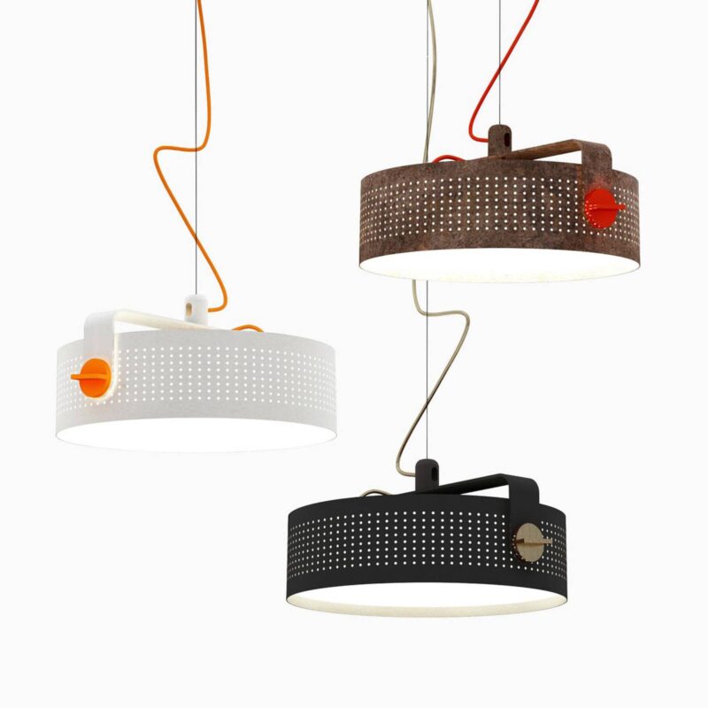Okrúhle LED závesné svietidlo Modena – otočné, s rozptýleným svetlom Nad stoly, pulty alebo na všeobecné osvetlenie obývacích izieb a salónikov je závesná lampa Modena príjemnou a vizuálne modernou variantou. Jeho tienidlo na lampu je navrhnuté ako plochý valec s monochromatickým hliníkovým telom a má pravidelný vzor bodových otvorov. Horná časť je zatvorená; svetlo je emitované priamo dole cez opálový kryt vyrobený z metakrylátu. Upevnenie tienidla na držiak pomocou dvoch farebne kontrastných skrutiek umožňuje jeho vyklopenie do strany. Závesné svietidlo Modena navrhol taliansky úrad Area-17 Architecture & Interiors, ktorý je aktívny v oblasti architektúry a interiérového dizajnu. Výrobca Martinelli Luce zaručuje výrobu lampy v najlepšej možnej kvalite.