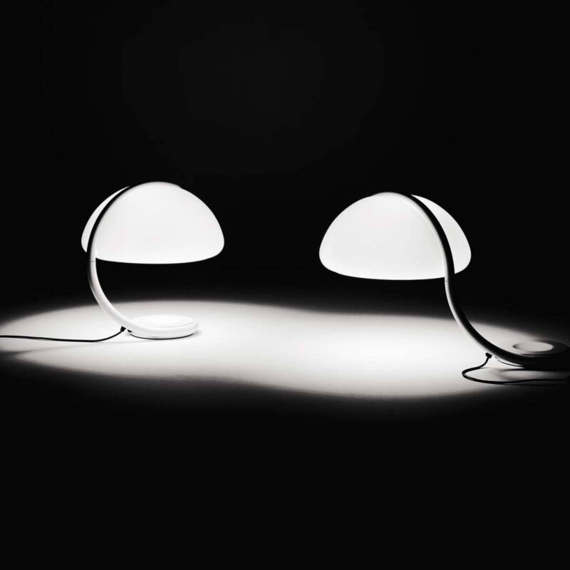 Stolová lampa Serpente je svižná ako had Stolová lampa Serpente sa vyznačuje jednoduchými tvarmi. A napriek tomu ukazuje mimoriadne kreatívny dizajn, ktorý je nielen nadčasový, ale aj funkčný. Okrúhly kovový otočný tanier tvorí základňu, z ktorej sa tiahne filigránové rameno, ktoré sa zase končí veľkým tienidlo na lampu vyrobeným z opálovo bieleho metakrylátu. Tvar, ktorý z neho vychádza, v skutočnosti pripomína vzpínajúceho sa hada, podľa ktorého dostala stolová lampa Serpente svoje meno. Poskytuje rovnomerné dodatočné svetlo bez oslnenia, vďaka čomu je Serpente ideálnym spoločníkom v obývacej izbe. Serpente – nielen stolová lampa, ale vždy ozdobný pútač očí! Svetlá od Martinelli Luce sa zdajú inšpirované prírodou a geometrickými tvarmi, ktoré vytvárajú funkčné systémy osvetlenia. Sú vyrobené z materiálov, ktoré odrážajú skutočné vlastnosti svetiel. Niektoré z týchto jedinečných svetiel sú vystavené v najdôležitejších múzeách dizajnu na svete. Martinelli Luce ponúka nielen svetlá pre súkromné použitie, ale aj technické systémy, ktoré boli špeciálne vyvinuté pre použitie v kanceláriách, obchodoch, hoteloch a iných verejných priestoroch. Dôraz sa kladie na moderné technológie, ktoré optimalizujú spotrebu energie a ponúkajú nové možnosti rozvoja.