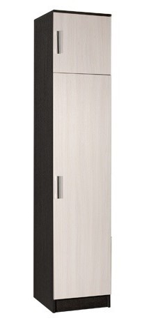 Úzka skriňa vhodná ku predsieni MÁŠA (viď. Príslušenstvo). Vo vnútri sa nachádzajú police. Korpus je vo farebnom odtieni wenge, predné časti majú farbu dub mliečny.Rozmery v/š/h 202 x 40 x 38 cm.Pri tomto nábytku je použitá kvalitná LTD doska. Kovové úchytky. Dodávané v demonte.