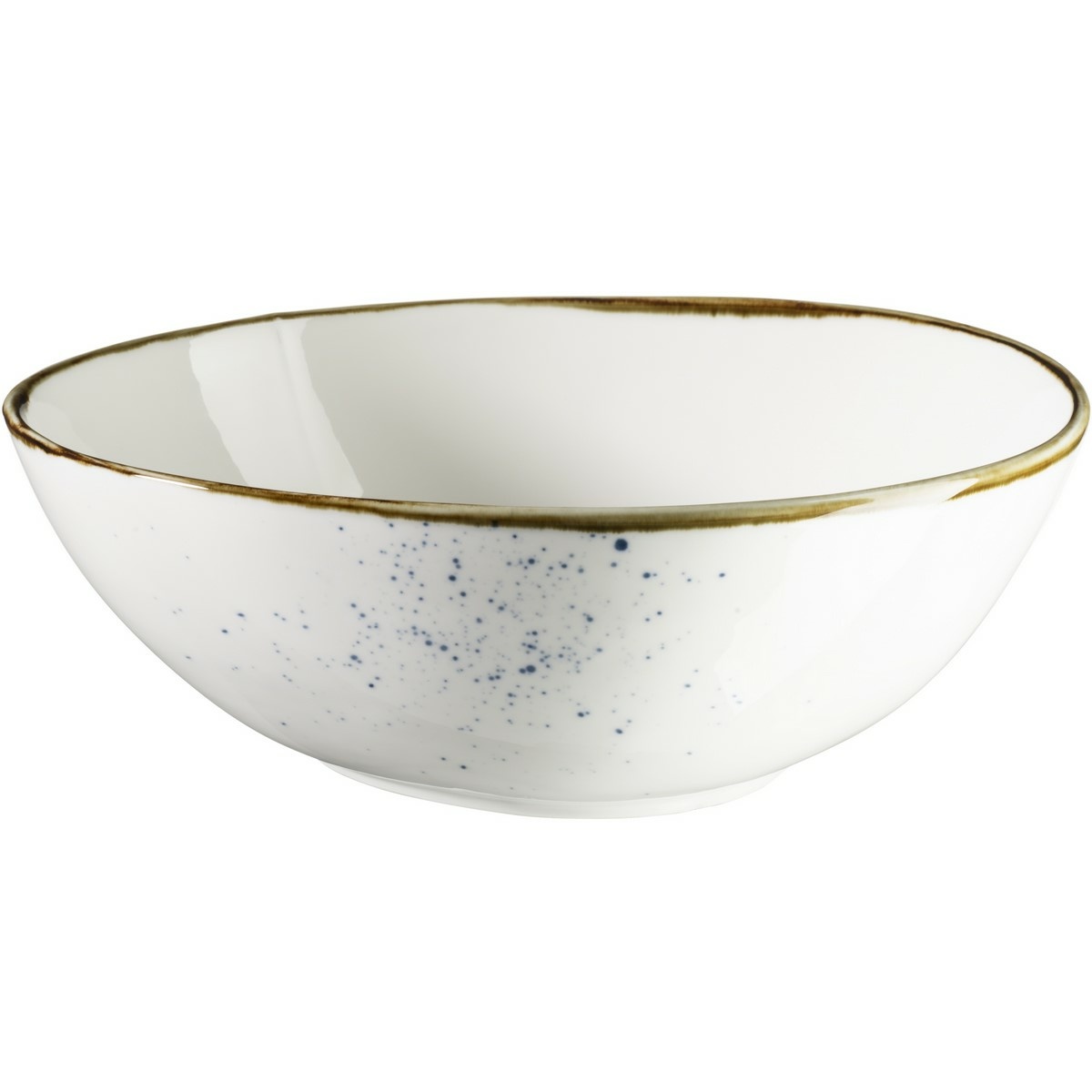 Táto oválna miska Mäser z kolekcie Pintar s rozmermi 22 x 19 cm zaujme svojím elegantným nepravidelným tvarom a originálnym dizajnom. Je vyrobená z kvalitného porcelánu a má krémovú glazúru s jemnými modrými bodkami, ktoré jej dodávajú moderný vintage vzhľad. Okraj misy je farebne zladený v hnedom odtieni, čo podčiarkuje jej štýlový vzhľad.Tácka je ideálna na servírovanie šalátov, polievok, príloh alebo malých jedál. Vďaka svojim nepravidelným líniám prináša na váš stôl jedinečný vizuálny efekt. Je vhodná do mikrovlnnej rúry a umývačky riadu, čo zaručuje pohodlné používanie a údržbu. Tento kúsok dodá eleganci a štýl každodennému stolovaniu aj slávnostným príležitostiam.Hlavné výhody produktu: