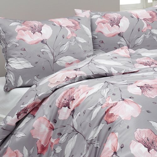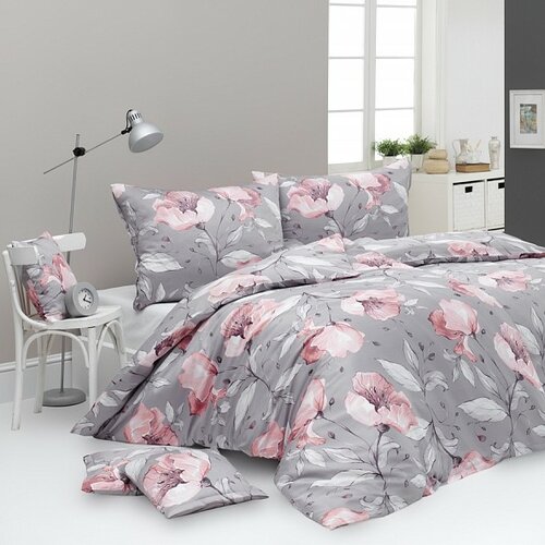 Nechajte sa okúzliť nadčasovou eleganciou florálneho vzoru v jemných pastelových farbách obliečok Amabel. Na kvalitnej látke vyniká hrejivý odtieň podkladovej sivej farby s ružovkastými tónmi a celá paleta odtieňov ružovej – od púdrovej až po staroružovú farbu okvetných lístkov, ktorých plastickosť podčiarkuje krémovo biela. Posteľná bielizeň je opatrená komfortným zipsovým uzáverom.Súprava obsahuje: