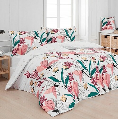 S posteľnou bielizňou Brooke vaša spálňa rozkvitne v hrejivých farbách. Decentná kvetinová kresba v odtieňoch lososovo ružovej, vínovej, petrolejovej a horčicovo žltej vyniká na krémovo bielom podklade. Motív dopĺňajú po celej ploche čriepky v jemnej púdrovej farbe.