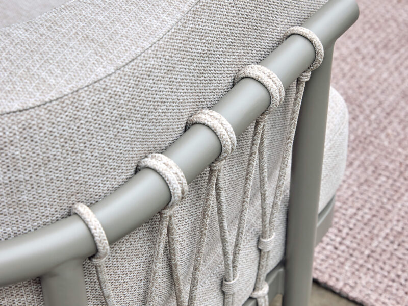 Maui 2-sedačka ľavá so sivou hliníkovou konštrukciou a pohodlnými vankúšmi Bee Wett® je ideálnym riešením na vytvorenie štýlovej a pohodlnej sedacej súpravy s rope výpletom.