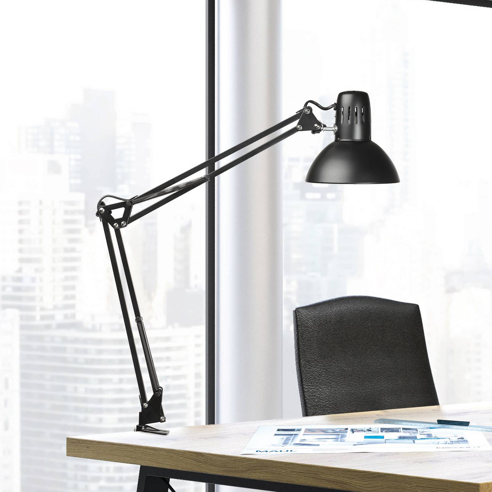 Klasická stolná lampa MAULstudy s LED diódou E27 Stolná lampa MAULstudy je absolútnou klasikou medzi stolnými lampami. Tienidlo na lampu a ramená sú vyrobené z kovu a dajú sa nastaviť vo všetkých smeroch. Každé z dvoch ramien je dlhé 35 cm, tienidlo na lampu má priemer 17 cm a na vnútornej strane je reflektor na optimálne využitie svetla. Štúdia je vybavená teplou bielou LED žiarovkou E27 a ponúka vysoký výkon pri nízkej spotrebe energie. Vypínač je umiestnený na kábli a stolná lampa Study sa upevňuje pomocou upínacej základne (šírka upnutia 0 – 5,5 cm) – osvetlenie 1840 luxov vo vzdialenosti 35 cm