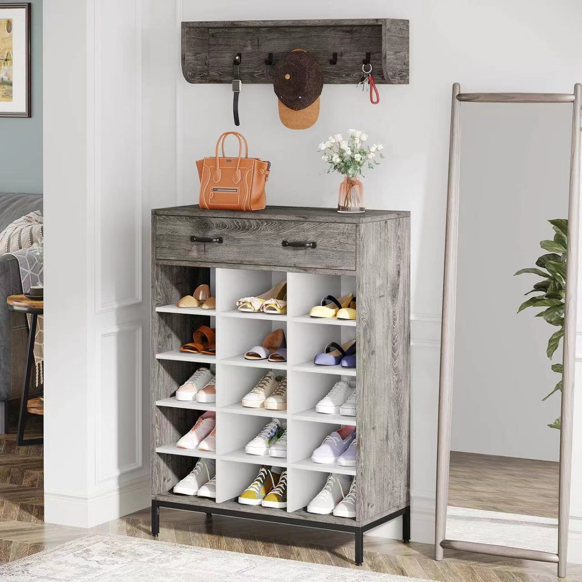 MAYER otvorená predsieňová zostava, šedé drevo rustik