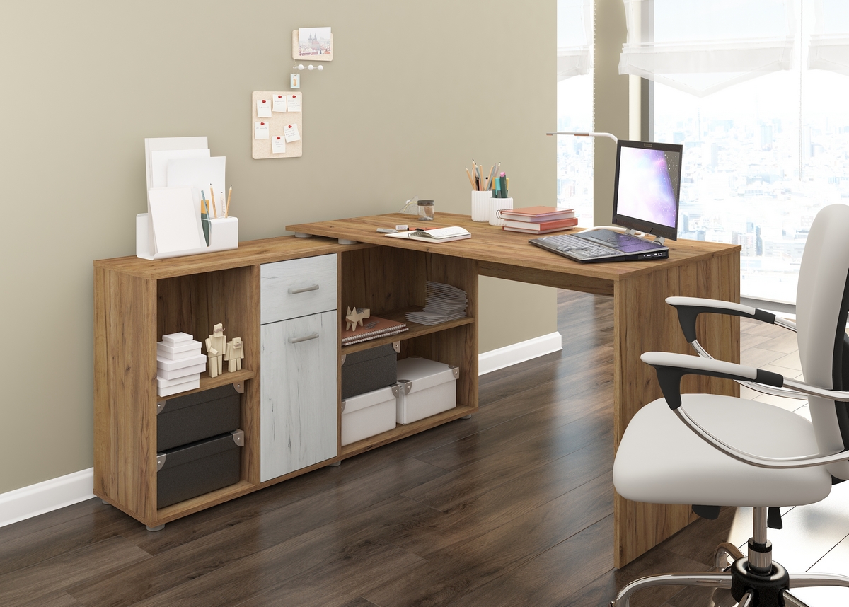 MEBLOCROSS Beat L rohový písací stôl craft zlatý / craft biely