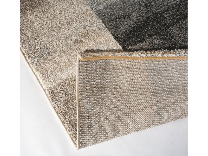 Moderný koberec s geometrickými tvarmi kombinujúcimi béžovú, hnedú a šedú farbu. Vyrába sa z kvalitného polypropylénu heatset frisé