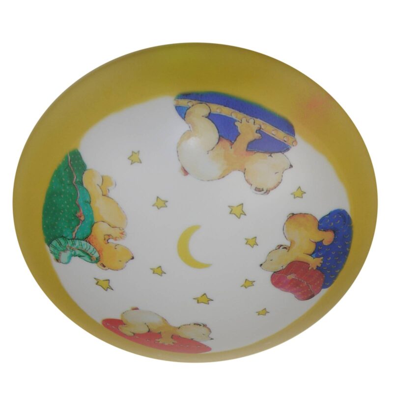 Okrúhle stropné svietidlo Medveď Berni do detskej izby Čože, čože, niekto sa tu zdá byť unavený! Je to medveď Berni, ktorý tu tak uvoľnene leží na svojom vankúši a hneď skĺzne do ríše snov? Očividne! Pritom vyzerá neuveriteľne spokojne a má veľmi uvoľnený výraz tváre! Malé deti, ktorých izbu zdobí stropné svietidlo, budú milovať malého medveďa, ktorý vyzerá tak spokojne! Vďaka dvom poskytnutým objímkam žiaroviek môže byť detská izba jasne osvetlená. Pri výbere žiaroviek by ste mali dbať na to, aby ste používali iba energeticky úsporné žiarovky alebo LED žiarovky. Od použitia skla sa zámerne upustilo. Nerozbitnosť svietidla Medveď Berni do detskej izby je zabezpečená použitím odolného plastu, aby sa napríklad mohli bez obáv odohrať vankúšové bitky.