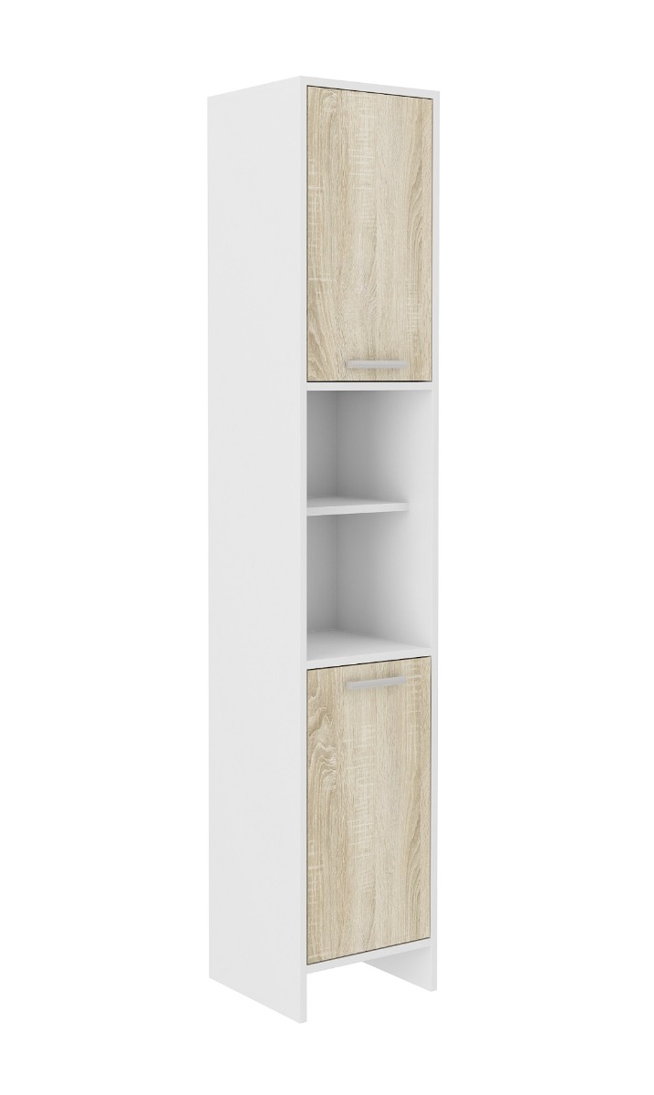 MELINDA je kúpeľnový štýlový nábytok, vhodný do moderných interiérov. Najdete u nás viacero prvkov kúpelňového sektoru MELINDA a tak si poskladáte svoju kúpelňu podľa predstáv.Skrinka je vyrobená z kvalitných LTD dosiek, ktoré sa jednoducho udržiavajú. Hrúbka dosky je 16 mm. Úchytky sú vyrobené z plastu. Zadná stena je zo sololitu.Farebné prevedenie skrinky: dub Sonoma, biela.Rozmery:šírka: 33,8 cmvýška: 180,5 cmhĺbka: 32,8 cm.Dodávame v demontovanom stave.