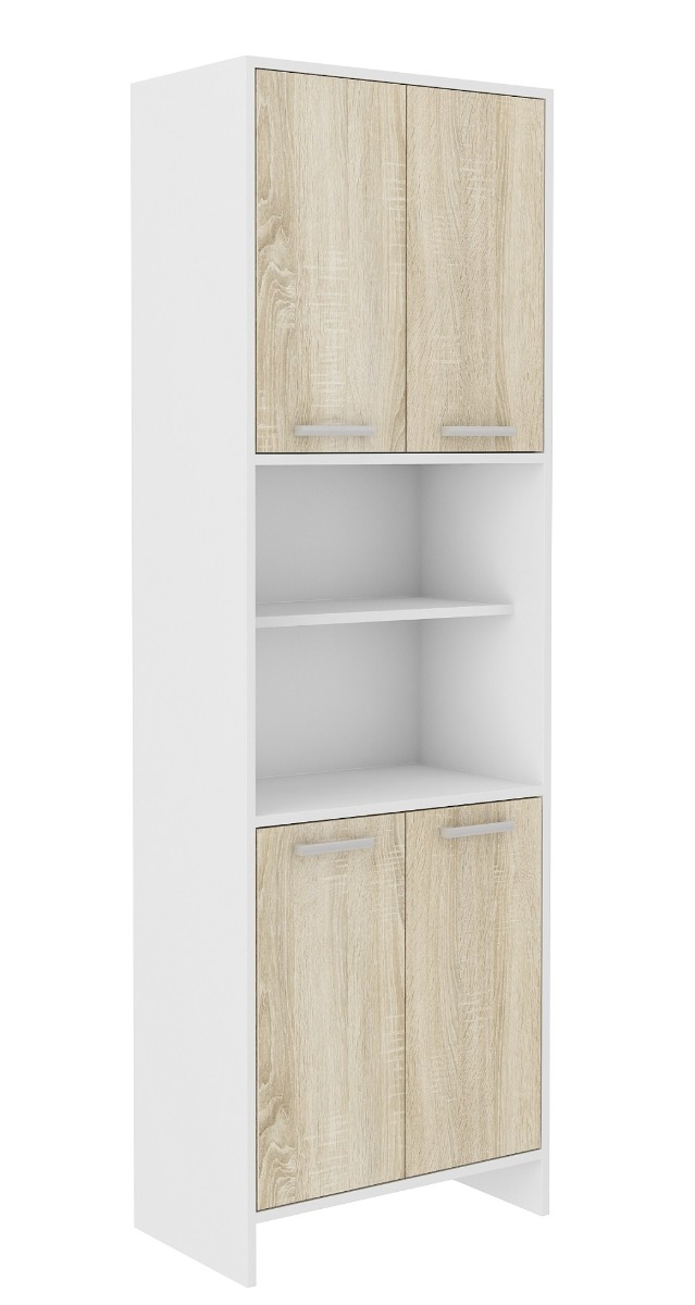 MELINDA kúpeľňová 4-dverová skrinka, dub Sonoma / biela