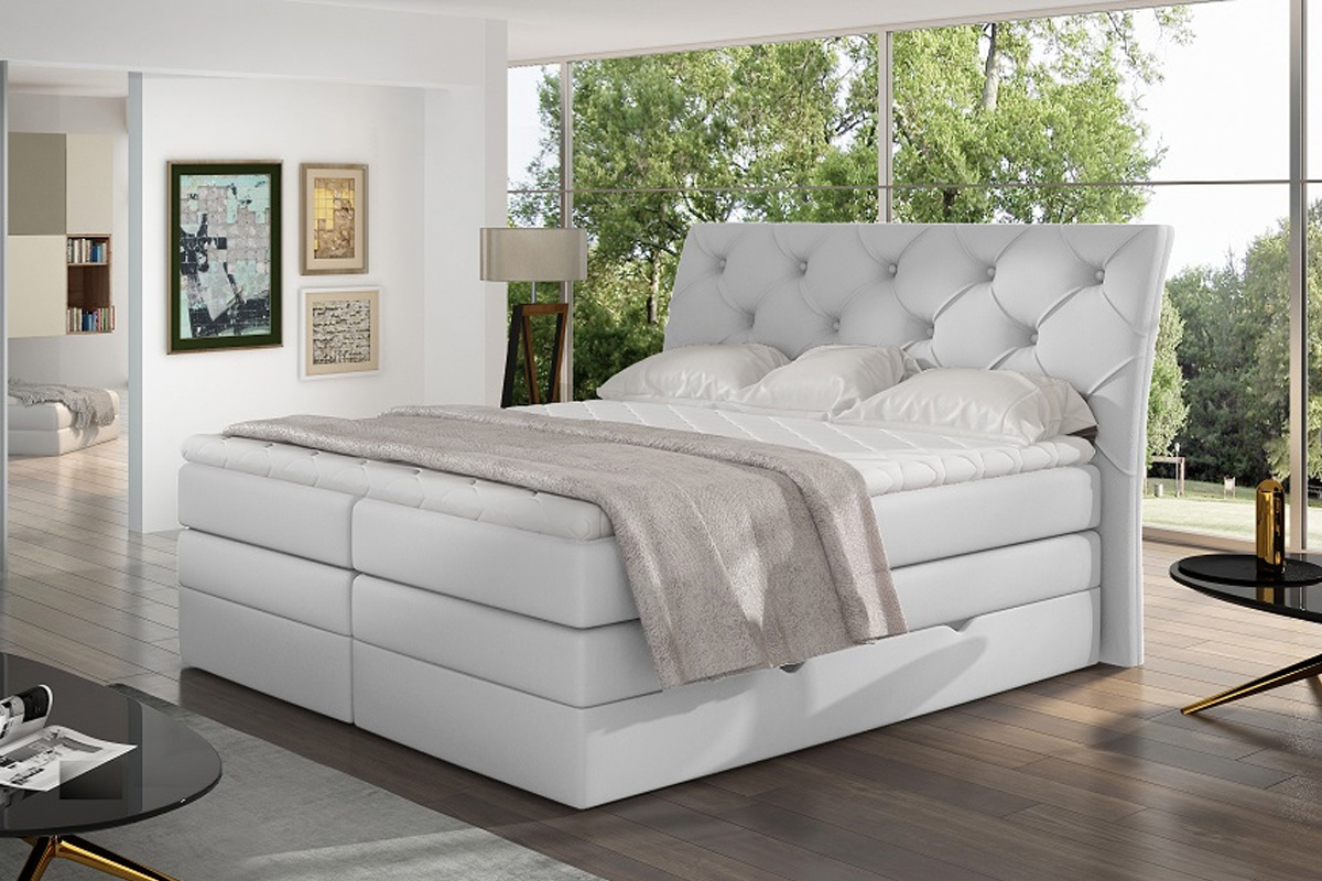 Manželská posteľ Memento patrí k boxpringovým posteliam, ktoré zosobňujú eleganciu, luxus a pohodlný odpočinok v jednom. Je vyrobená z vysoko kvalitných materiálov, čo zaisťuje jej dlhodobé používanie. Táto atraktívna posteľ bude vo vašej spálni vynikať a stane sa súčasťou vášho domova.V spodnej časti postele Memento sa nachádzajú dva priestranné úložné priestory. Nad úložným priestorom je zabudovaný matrac, ktorý je vyplnený bonellovými pružinami v spojení s PUR penou o hustote T-25. Na ňom sa nachádza matrac, ktorý je vyplnený pružinami POCKET, čo sú vysokokvalitné taštičkové pružiny. V cene postele je tiež TOPPER – vrchný krycí matrac. Je vyplnený PUR penou o hustote T3030. Topper eliminuje medzeru medzi matracmi a vytvára tak mäkký a hladký povrch na spanie. Dekoratívnym prvkom postele je jej prešívané vysoké čelo. Vyzerá veľmi štýlovo a zároveň slúži ako operadlo a chráni stenu pred oderom. Manželská posteľ Memento je čalúnená pevnou a kvalitnou ekokožou Soft 17. Rozmery postele (š,v,h): 178 x 120 x 215 cm. Výška spacej plochy: 62 cm. Spacia plocha: 160 x 200 cm.Ďalšie charakteristiky:Tvrdosť matraca – H3Obojstranný matracHypoalergénny poťahPoťah je snímateľný (na zips) – možnosť prať na 40°CV našej ponuke nájdete aj ďalšie prevedenia tejto štýlovej postele.Dodávame v demontovanom stave.