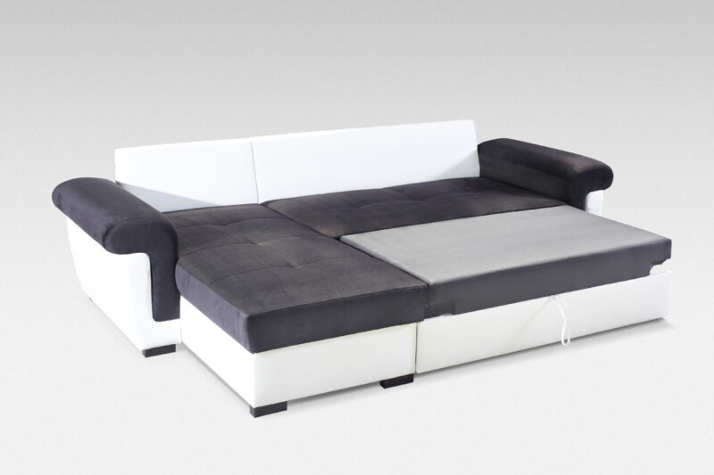 Rozkladacia sedačka MENDET je spojením skvelého moderného dizajnu a elegancie. Vyniká nielen svojím vzhľadom, ale i praktickým spracovaním. Je vhodná do moderných typov interiérov.Sedák je tvorený kvalitnými vlnovcovými pružinami v kombinácii s PUR penou. Zabezpečuje tak maximálny komfort počas sedenia. Je čalúnená látkou Casablanca 2316 a Madryt 120 – ekokoža.Sedačka disponuje praktickým úložným priestorom na uloženie vašej posteľnej bielizne a podobne. Po rozložení vám poskytne spaciu plochu o rozmere: 200 x 143 cm. Je vhodná na príležitostné spanie.Rozmery rohovej sedačky (š,d,v): 265 x 159 x 84 cm.Sedačka je univerzálna – je možné ju zložiť s pravým aj ľavým umiestnením rohu.