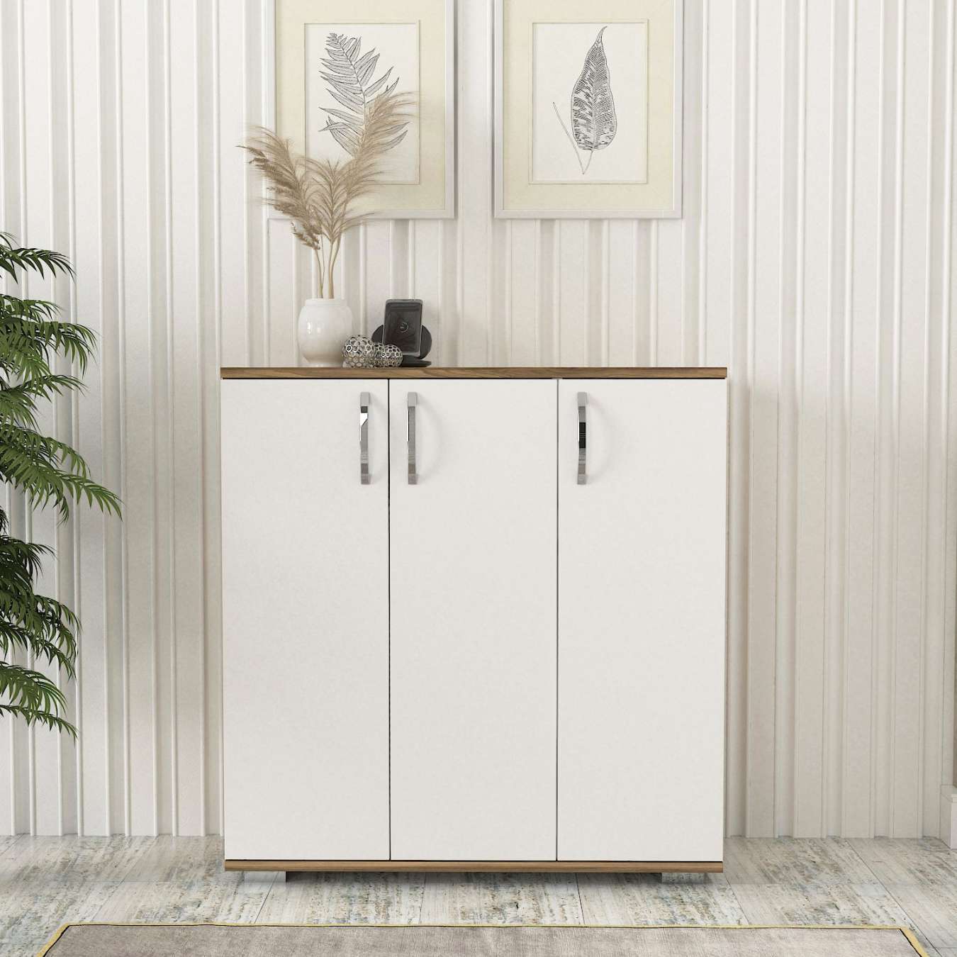 MENIS – Štýlový botník vo farbe biela + orechPridajte do svojej predsiene praktický a elegantný botník MENIS. Tento moderný botník v kombinácii bielej a orechovej farby je navrhnutý tak, aby poskytoval dostatok úložného priestoru pre vašu obuv a zároveň dodal vašej predsieni štýlový vzhľad.Typ tovaru: BotníkVhodné do miestnosti: PredsieňMateriál: LTDRozmer: 89 x 93 x 29.5 cmFarba: Biela + orechVybavenie: DvierkaHrúbka materiálu: 18 mmPoznámka: Dodávame v demonte.Botník MENIS je vyrobený z kvalitného materiálu LTD s hrúbkou 18 mm, čo zaisťuje jeho dlhú životnosť a odolnosť. Jeho elegantný dizajn v kombinácii bielej a orechovej farby sa hodí do akéhokoľvek interiéru, pričom dodáva moderný a prírodný nádych. Praktické dvierka uľahčujú organizáciu a udržanie poriadku vo vašej predsieni.Zaobstarajte si botník MENIS a udržujte svoju predsieň vždy upravenú a štýlovú!
