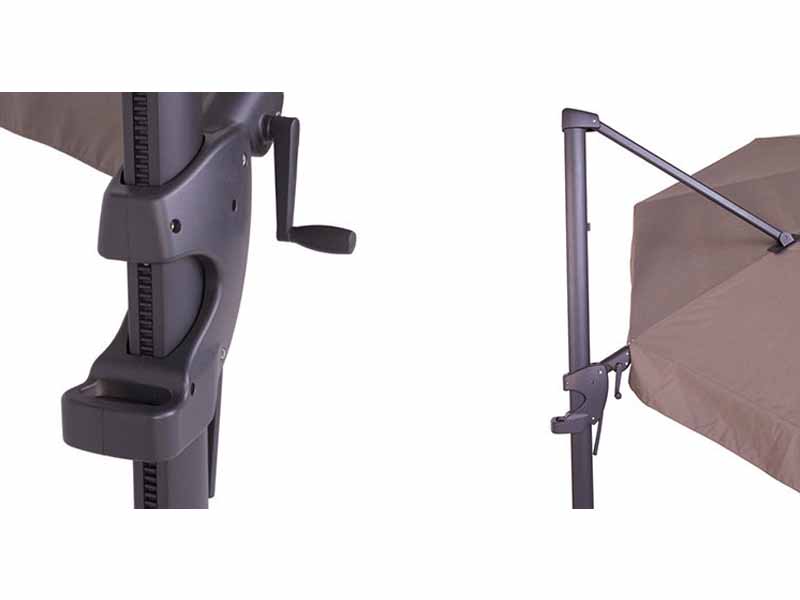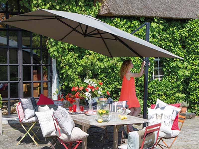 Výnimočný slnečník Menton s kvalitným hliníkovým rámom a možnosťou naklápania do strán.