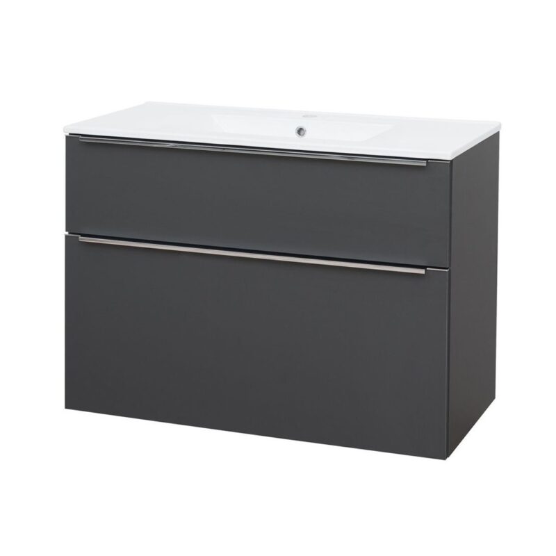 Mereo Mailo, kúpeľňová skrinka s keramickým umývadlom 101 cm, antracit, chróm madlo CN532