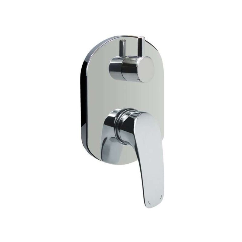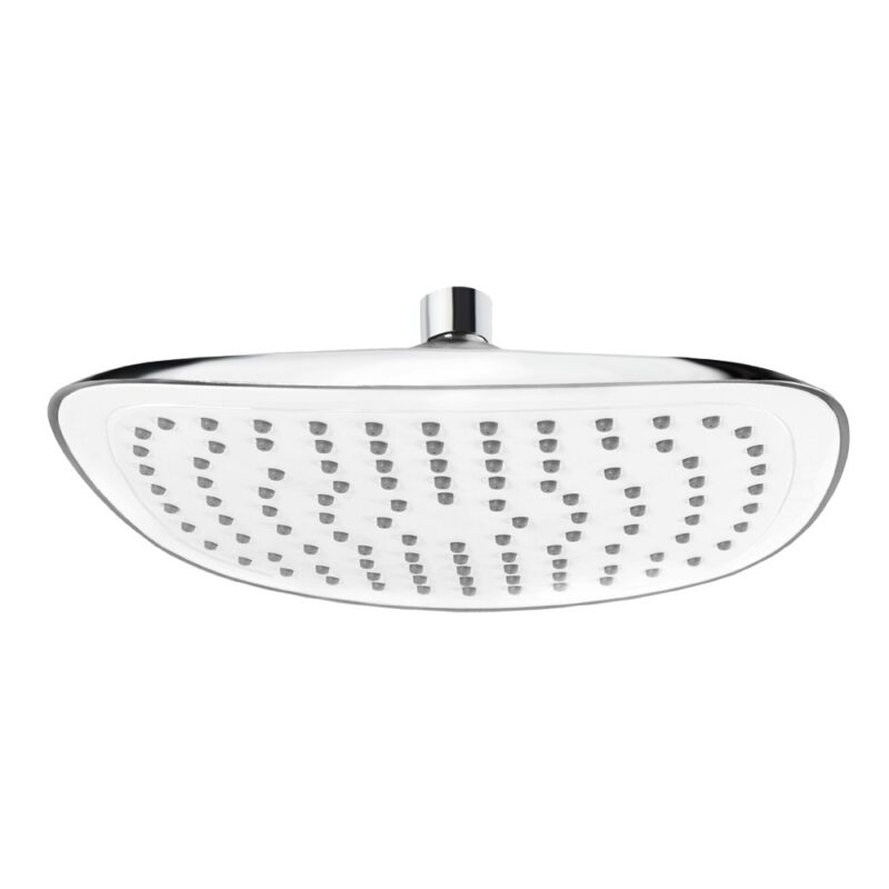 Dvojcestná podomietková batéria s keramickým prepínačom, Mbox, oválny kryt, vývod s držiakom sprchy, stropné rameno, tanierová oválna sprcha 230×180 mm biela / chróm, šedostrieborná hadica 150 cm, jednopolohová ručná sprcha.10 rokov záruka na batériu. Ean: 8596462567677