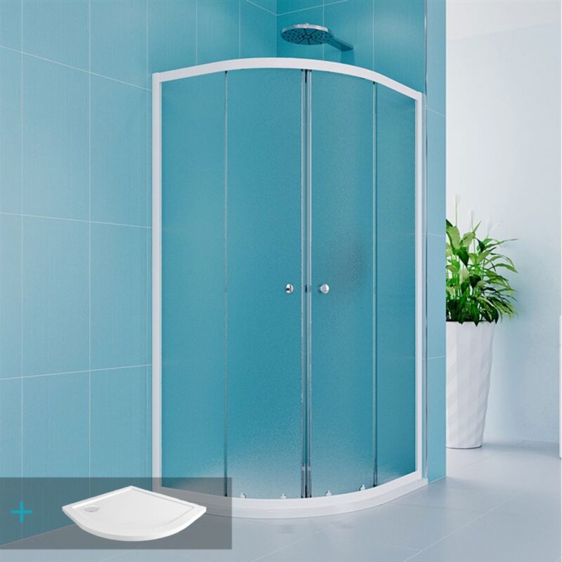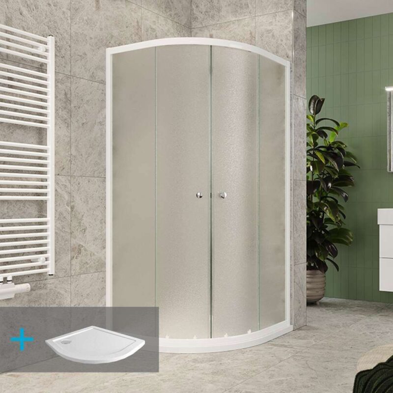 MEREO Mereo Sprchový set z Kory Lite, štvrťkruh, 90 cm, biely ALU, sklo Grape a nízké SMC vaničky CK35121ZN