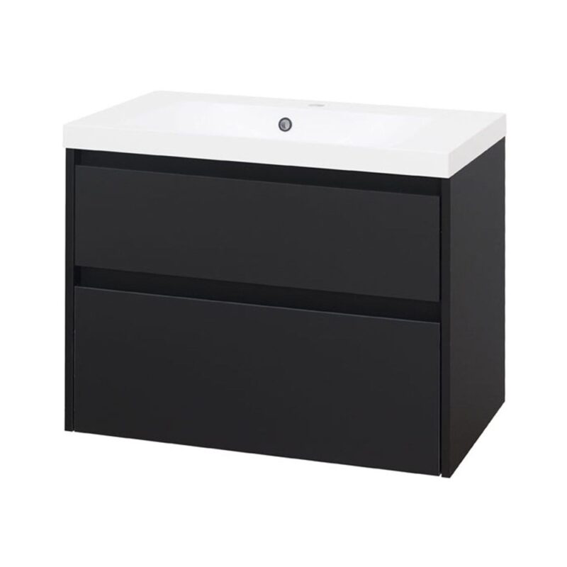 Mereo Opto, kúpeľňová skrinka s umývadlom z liateho mramoru 81 cm, čierna CN941M